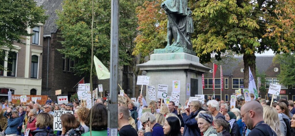 In aanloop naar de verkiezingen van 29 oktober organiseerden actiegroepen een demonstratie tegen de verbreding van de A27 en voor de natuur. Het doel is dat een nieuwe Tweede Kamer en een volgend kabinet de plannen voor de verbreding van de A27 schrapt. Voor de verbreding moeten ruim 800 bomen in landgoed Amelisweerd worden gekapt. Vanaf het Domplein liepen de deelnemers een mars van ongeveer 2,5 kilometer door het centrum van de stad.