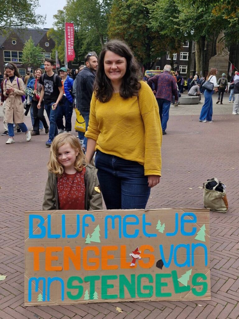 “Het is hoog tijd dat we de natuur beschermen in plaats van vernietigen. Juist nu hebben we duurzame oplossingen nodig en geen natuurvernietigende wegverbreding die twee miljard euro kost”, zegt Merel de Koning van Amelisweerd niet Geasfalteerd. “Dit protest laat zien dat ontzettend veel mensen bereid zijn om tegen die wegverbreding te strijden. Als dit belachelijke plan wordt doorgedrukt, zal een deel van ons het bos beschermen door in bomen te klimmen.”